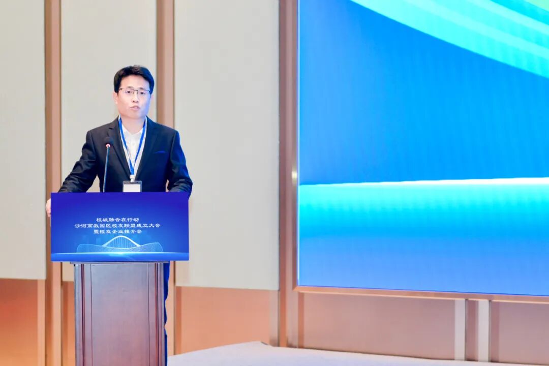 ROBOTAC赞助企业赛曙科技作为比赛协办单位,应邀出席本次会议。赛曙科技孙政作为北京科技大学校友企业代表上台发言,在祝贺沙河高教园区校友联盟成立的同时,也就当下十分具有发展潜力的机器人和人工智能行业进行了探讨,孙政表示机器人和人工智能行业蓬勃发展,对创新复合型人才需求较高,高校为此调整专业设置与课程体系。沙河高教园区和昌平区高校众多,科创潜力大,期望高校校友联盟发挥作用。