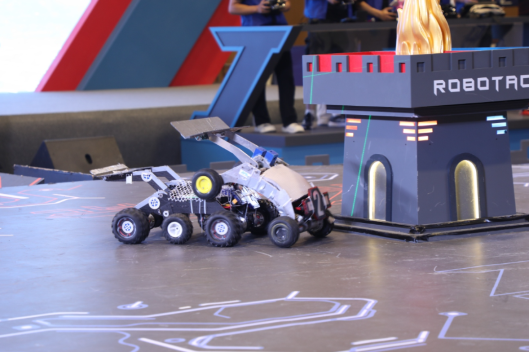 本届ROBOTAC赛事以“长城烽火”为主题,特别向2005年ROBOCON“登长城,点圣火”的赛事主题致敬。本届赛场精心模拟长城关隘布局,机器人需完成“点燃烽火台”、“抢占关隘”等任务来完成竞技。“长城烽火”对抗赛分为初赛和复赛,初赛采用小组循环赛制,复赛为一场决胜的淘汰赛,冠亚军决赛实行三局两胜制。比赛中,小组前2名共16支队伍成功晋级复赛,随后依照对阵图依次进行八分之一决赛、四分之一决赛、半决赛。最终,两支顶尖参赛队脱颖而出,闯入决赛。