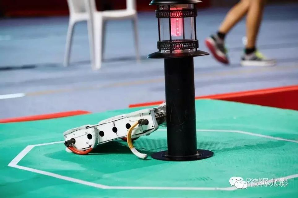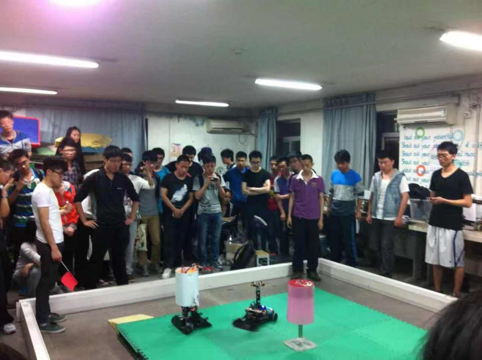 2013年10月,机器人DOTA测试赛在北京科技大学教职工礼堂成功举办,标志着ROBOTAC从概念构想迈向现实的关键一步。为了模拟游戏中的“生命值”概念,开发了第一代“生命柱”——竹节瓶+5方位行程开关。