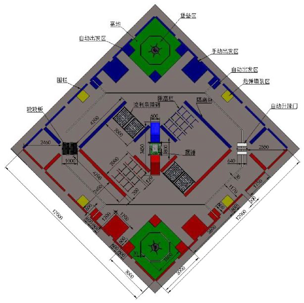 12月25日,发布《第十七届全国大学生机器人大赛Robotac比赛规则1.0》,改动创新点包括增加速胜条件、引入大六足堡垒,将通信方式从Zigbee改为Wifi,加血、减血模块使用UWB定位。此外,比赛场地也有较多改动:首先,场地中央大面积的森林更改为限高栏和流利条障碍。其次,保留跷跷板,用自动升降门替换阶梯。然后,改进堡垒外形,将场地中间的断桥变为摆锤,场地高地位置回复到对角两旁,角落旁各增加一个自动出发区。最后,高地面积增大为3000mm*3000mm,且新增了1个600mm*600mm的炮台安置区。