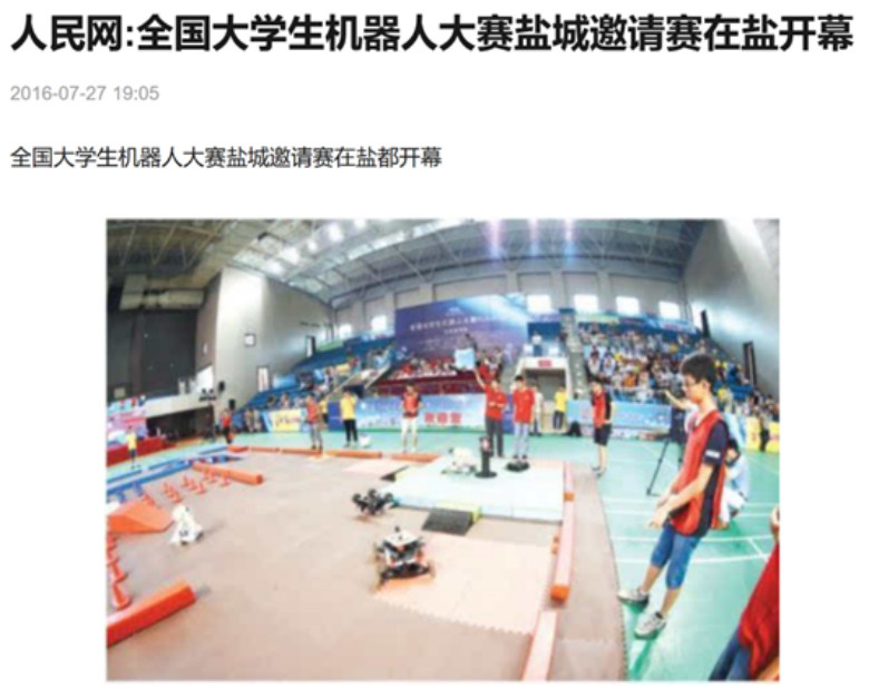 7月23至24日,2016全国大学生机器人大赛ROBOTAC盐城邀请赛成功举办,汇聚北京科技大学、华北电力大学、天津工业大学等十所高校的百余名学生同场竞技,受到人民网、盐城电视台和荔枝网等多家媒体的深度报道。