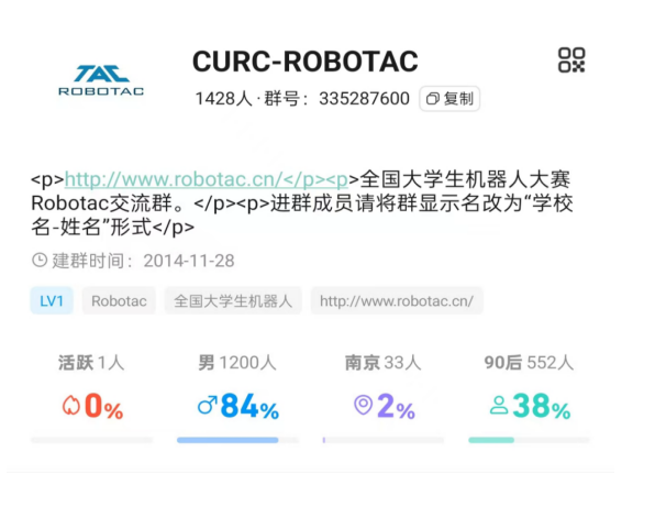 11月28日,建立ROBOTAC官方交流QQ群(群号:335287600),为参赛院校师生提供一个即时沟通、经验分享与技术互助的线上平台,标志着ROBOTAC系统化社群运营的开端,为后续赛事推广、规则答疑奠定了重要基础。